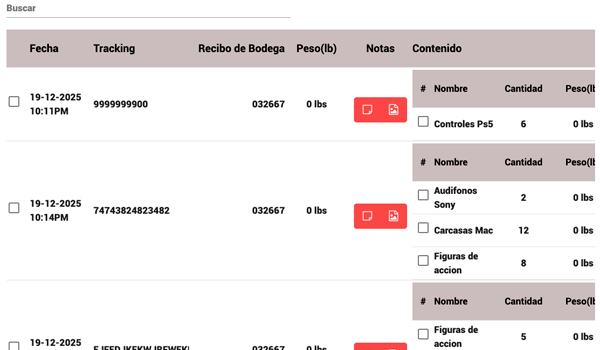 Prealerta tus compras y elige, entre los paquetes recibidos en bodega, los artículos que deseas consolidar y enviar a las direcciones de destino que prefieras.